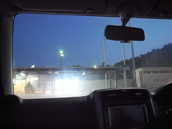 25:02 関門大橋 九州滞在時間は12時間43分 25:35 伊佐パーキングエリア 眠いので終了。 ODO 86610km 本日の走行距離 1013.9km 2011.5.5(木) 6:25 起床 7:00 出発 7:10 山口ジャンクション手前の美東サービスエリアで作戦会議 議題は四国に行くかどうか→四国に行くことに決定→山口ジャンクションでは山陽道へ ガソリンスタンドがセルフに変わっていたので、給油して出発。 店員さん(セルフの割に随分に沢山いた)に聞いたら、1年くらい前にセルフになったとのこと。高速道路のガソリンスタンドも、どんどんセルフになって欲しい。 7:48 山口ジャンクションを山陽道へ 7:55 佐波川(さばがわ)サービスエリア シャワー・ステーション(10分間200円)を利用してでシャワーを浴びてスッキリした後、朝食♪ 9:42 出発(いつもながら遅い) 10:30 広島県に入る 10:42 宮島サービスエリアでひとり作戦会議 しまなみ海道で四国に渡ることに決定! 空はだいぶ明るくなってきた。昨日、一昨日よりは黄砂の影響が少なくなっているみたい。 かきだし塩ラーメン(600円)が気になったので、お昼にはまだ早いけど食べてみた。味は忘れた。 12:09 出発 12:56 珍しく、「山陽自動車道最高地点 標高375m」の標識を撮影できた 13:05 尾道インターチェンジで山陽道を下りる。(通行料金1000円) 13:29 尾道大橋で向島(むかいしま)に渡る。 軽自動車の通行料金50円(2013.4.1より無料開放) この道、マップルには広島県道377号と表記されているが、ヘキサ標識は県道466号になってる。 レポートを作りながら、「どういうこと?」って検索してみたら、県道466号は「向島因島瀬戸田自転車道線」っていう自転車道のこと。このヘキサは、自転車道の標識だったんだ。 13:57 ロングツーリングクラブで紹介されていた高見山に来てみた。 おおっ良い景色(^^/ 黄砂の影響で霞んでいるのが残念。澄んだ青空の日に再訪したい。 東方面 14:40 因島大橋を渡る。(通行料金275円) 14:40 大浜パーキングエリア しまなみ名物はっさくソフト260円(←10円予算オーバー)を食べたけど、たいしたことなかった。 15:30 因島大橋記念公園 16:30 白滝山(しらたきやま)山頂 しまなみ海道の曲線と因島大橋が美しい。 向かいの島は向島(くだらねー) 2時間前にいた高見山の山頂が見える。 あそこからここまで、こんなに簡単に来れるなんて、自動車や道路って素晴らしい! 四国に渡るつもりでここまで来たけど、もうすぐ日が暮れてしまうので四国行きは中止。本州に戻ろう。 日没まで少し時間があるので、広島県道366号西浦三庄田熊線で因島をぐるっとまわる。 島の南側は造船y所に遮られて海が見えない。 17:45 サークルK因島土生店でおやつタイム フジパン やわらか苺ジャムぱん 230kcal(←ローカロリーだね♪) 105円 CherieDolce(←サークルKサンクスのPB) 濃いめの紅茶ラテ 200ml 117kcal 150円 18:30 出発 因島大橋の上はクルマがずらっと並んでいて、ほとんど動いていない。 それでも、だい渋滞が短くなってきたようだ。 いずれにしても、因島大橋を渡らなきゃ帰れないから行くしかない。 因島大橋の中央付近で事故処理中だった。たいした事故じゃなさそう。 20分くらいで通過できた。 19:28 尾道大橋を渡る。 20:10 福山東インターチェンジから、山陽道に入る。 はじめ、久々に夜の国道2号巡航するつもりだったが、買い換えたばかりのレーダー探知機ユピテルMF50Siの調子が悪いので、リスクの少ない高速道路を走ることにした。(結局、MF50Siはスピーカー不良により保証修理になった。) 20:16 岡山県に入る 21:00 瀬戸パーキングエリア この先10km以上渋滞中らしいので、休憩とトイレタイム 21:59 兵庫県に入る 兵庫県に入って数kmの所で渋滞が始まったけど、たいしたことなかった。 22:24 龍野西サービスエリア ちょっと落ち着かない駐車スペースだけど、眠いのでここで終了しよう。 おなかが減ったので、寝る前に明石うどん(550円)を食べる。結構美味しかった。 食べたら元気が出てきたので、やはりコンビニがある三木サービスエリアまで走る。 23:24 出発 24:24 三木サービスエリアで終了。おやすみなさいZzz ODO 87150km 本日の走行距離 539.2km 2011.5.6(金) 4:33 寒くて目が覚める。このまま起きるか・・・ サービスエリア内のパソコンで気象庁の天気予報をチェック 紀伊半島の国道425号を走ることに決定。 ファミリーマートで朝食を食べて、セルフの宇佐美石油で給油 6:15 出発! ちょっと霞んでるけど、まずますの空 7:03 眠くなってきたので、東大阪パーキングエリアでひと眠り。 やはりちょっと寝不足だったんだね。 高架下なので、雨の日の車内泊には良いと思う。 8:10 目が覚める。ミニストップで目覚めのコーヒーでも・・というつもりが、おやつタイムしてしまった。 9:07 出発 9:48 和歌山県に入る 10:11 吉備湯浅(きびゆあさ)パーキングエリアでトイレと窓拭きタイム ・・・のつもりだったけど、食堂に和歌山ラーメン(600円)があったので、ちょっと迷った後に食べてみる。 しかしこれが、大失敗!! 固麺で注文したのに、柔麺って聞き間違え