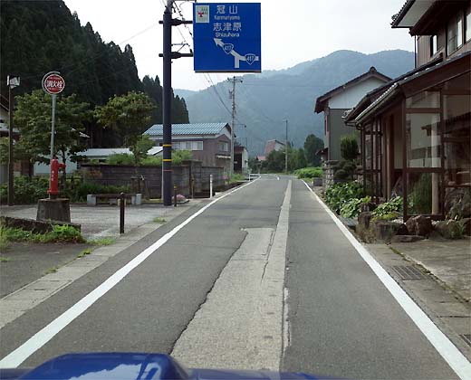道の駅を過ぎると、どんどん上って行く。 15:25 九頭竜ダム 15:48 threetroyさんのオススメにより油坂峠旧道へ 15:50 油坂トンネルを抜けると岐阜県 おむすび標識が残っている。国道として管理されているんだね。 眼下に白鳥の街が見える。 上は中部縦貫自動車道の油坂峠道路